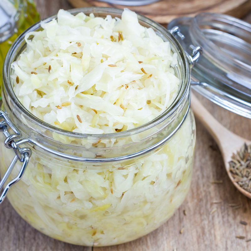 Choucroute, yaourt, fromage, cornichons … Nous mangeons souvent des aliments fermentés. Mais concrètement qu’est-ce que c’est la lactofermentation ? En l’absence de dioxygène (O2), les bactéries lactiques consomment les glucides qui se transforment en acides lactiques. Cette production d’acides élimine les mauvaises bactéries, ce qui permet la conservation des aliments. D’où le goût aigre de la choucroute !